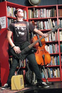 When Logan described the location, he said they were set up in a back room and there was a bookstore up front. So I really didn’t know what to expect. Turns out they were in a place called Read All Over – they had booked a booking in a book store (I had to say it, will you forgive me?). Read All Over sells used books in what feels like a re-purposed house, complete with a kitchen sink next to the stage. It’s lined up with all the other businesses in all the other used to be houses that populate William Street. It was perfect.