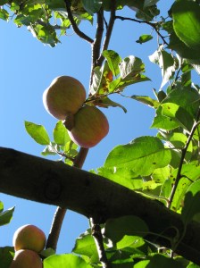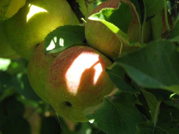 I’m sure those kinds of apple trees exist…but I didn’t see a one.  When we got to the orchard, I was confronted with two things I didn’t expect, the first being the general appearance of the trees.  They were a little shorter than I thought they would be, and they had that kind of droopy shape where the branches stretch themselves way out until their weight forces them to curve toward the ground.  The second thing that surprised me is how the apples grew in bunches.  It was weirdly wonderful, a delight for the eyes.
