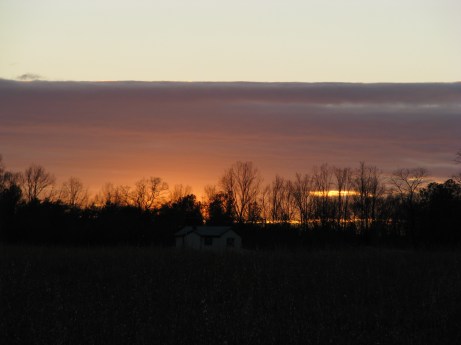 If you follow my photo blog, then you’ve already seen pictures of my front yard and some of the wonderful sunsets I’ve watched disappearing behind the trees. But there’s a huge field that begins just beyond my little range of trees, and I’ve been wanting to drive out there to get some “other sunset pictures”. The opportunity today was too good to pass up! I couldn’t get out there fast enough to capture that golden light that shot through the window, but there was some great color, nonetheless.