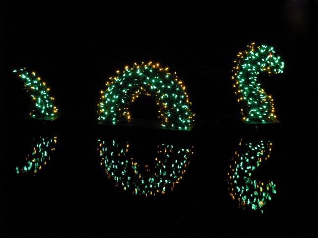 Anyway, I didn’t go to a museum this trip. I went to see the Dominion GardenFest of Lights at Lewis Ginter Botanical Gardens. I’ve only seen the gardens in full bloom once (another item for the list), but this is the second time I’ve been to see the lights. They do it every year during the holiday season, and it’s pretty spectacular. According to the website, there are over a half million lights! Think of how much time that must take to create. It seems to me like every piece of shrubbery is draped and every tree is wrapped in lights; they really go all out to provide an enjoyable experience. And it was an enjoyable experience for all of us. Of course, the weather was fabulous, so that helped!